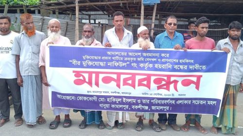 জামালপুর জেলার বকশীগঞ্জ উপজেলায় মুক্তিযোদ্ধার প্রভাব খাটিয়ে ক্রয়কৃত জমি বেদখল ও প্রাণনাশের হুমকির প্রতিবাদে মুক্তিযোদ্ধা নাফিউলের বিরুদ্ধে এই মানববন্ধন অনুষ্ঠিত হয়েছে। শুক্রবার (১৫ সেপ্টেম্বর) সকাল ১০টায় কামালপুর বাজারে ভুক্তভোগী মোঃ…